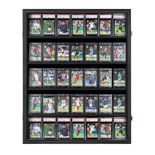 35 Graded Sports Card Display Case - Baseball Card Display Frame with UV Protection Clear View Lockable Wall Cabinet for Basketball Collectible Trading Card Black Finish